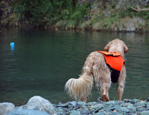 冷たいお水にドボンして、陸に上がってからも、持来したボールを地面に置いて、何やらジャレル茶色1号。
