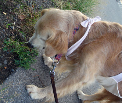 一晩かけて溶かしたフードをペロリと平らげ、“食う物も食ったし、あとは、縄張り回りだなぁ!”ってな感じで、張り切って散歩へゴー。